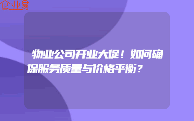 - 物业公司开业大促!如何确保服务质量与价格平衡?