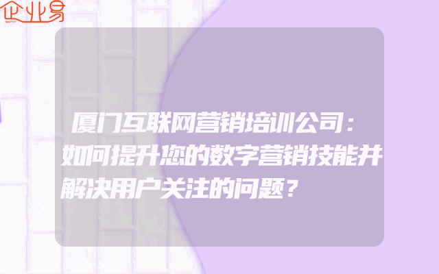 - 厦门互联网营销培训公司:如何提升您的数字营销技能并解决用户关注的问题?