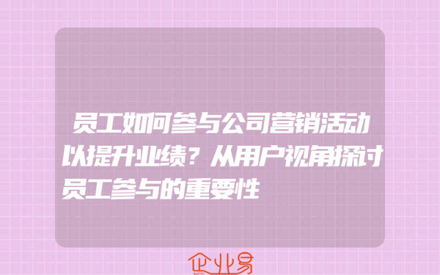 - 员工如何参与公司营销活动以提升业绩?从用户视角探讨员工参与的重要性
