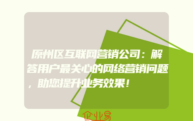 - 原州区互联网营销公司:解答用户最关心的网络营销问题,助您提升业务效果!随着互联网的快速发展,网络营销已经成为了许多企业拓展市场、提升业务效果的重要手段。然而,对于许多初次接触网络营销的企业来说,如何有效地进行网络营销,以及如何解决网络营销过