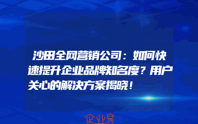 - 沙田全网营销公司:如何快速提升企业品牌知名度?用户关心的解决方案揭晓!