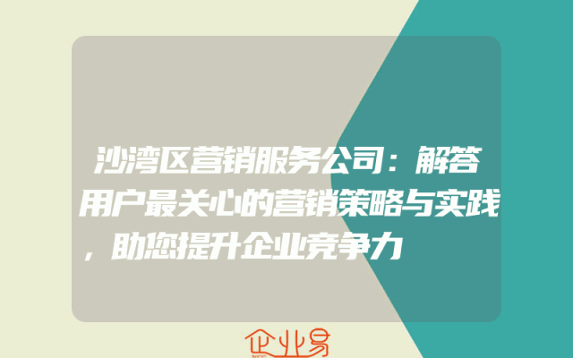 - 沙湾区营销服务公司:解答用户最关心的营销策略与实践,助您提升企业竞争力