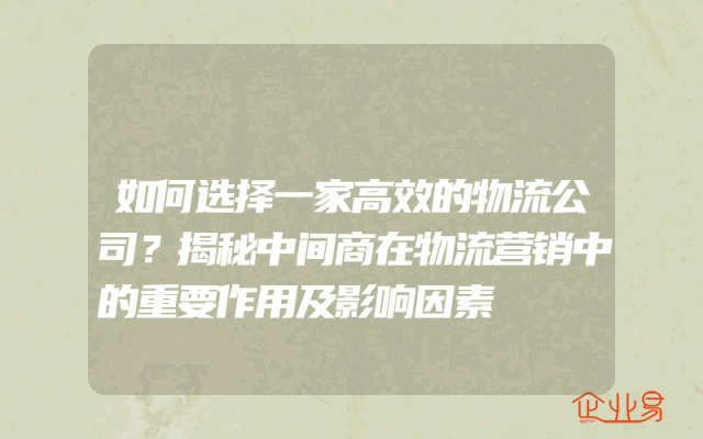 - 如何选择一家高效的物流公司?揭秘中间商在物流营销中的重要作用及影响因素