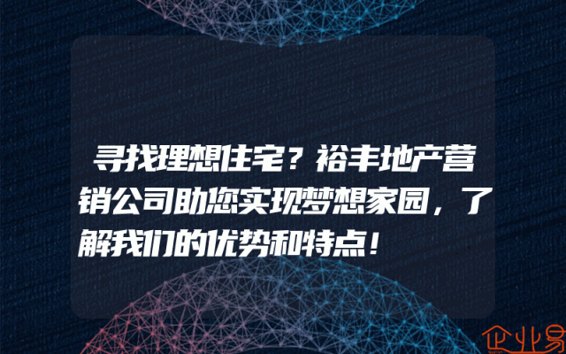 - 寻找理想住宅?裕丰地产营销公司助您实现梦想家园,了解我们的优势和特点!