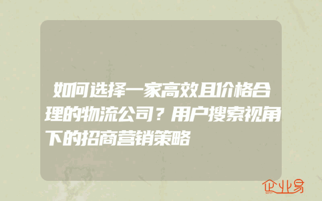 - 如何选择一家高效且价格合理的物流公司?用户搜索视角下的招商营销策略