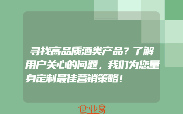 - 寻找高品质酒类产品?了解用户关心的问题,我们为您量身定制最佳营销策略!