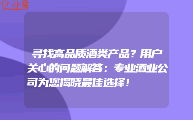 - 寻找高品质酒类产品?用户关心的问题解答:专业酒业公司为您揭晓最佳选择!