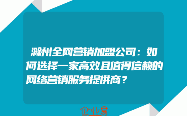 - 滁州全网营销加盟公司:如何选择一家高效且值得信赖的网络营销服务提供商?