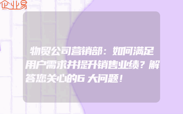 - 物贸公司营销部:如何满足用户需求并提升销售业绩?解答您关心的6大问题!