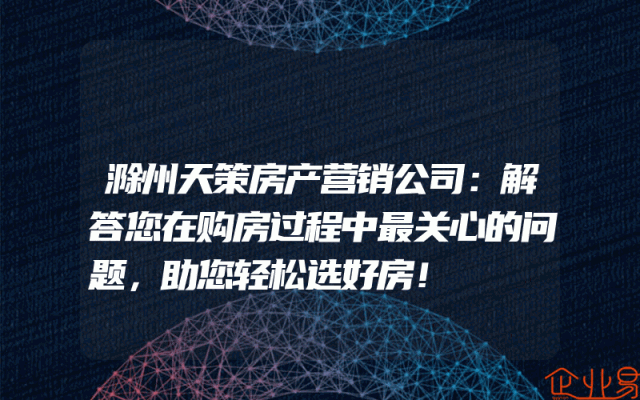 - 滁州天策房产营销公司:解答您在购房过程中最关心的问题,助您轻松选好房!