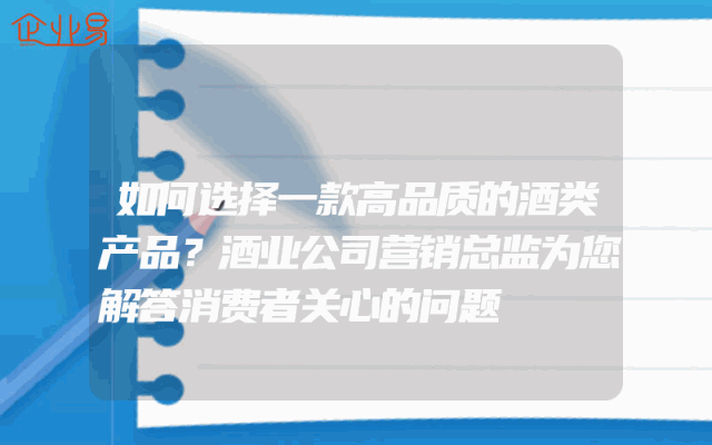 - 如何选择一款高品质的酒类产品?酒业公司营销总监为您解答消费者关心的问题