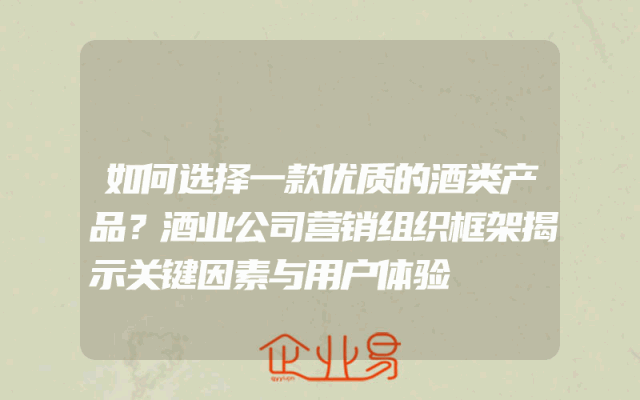 - 如何选择一款优质的酒类产品?酒业公司营销组织框架揭示关键因素与用户体验