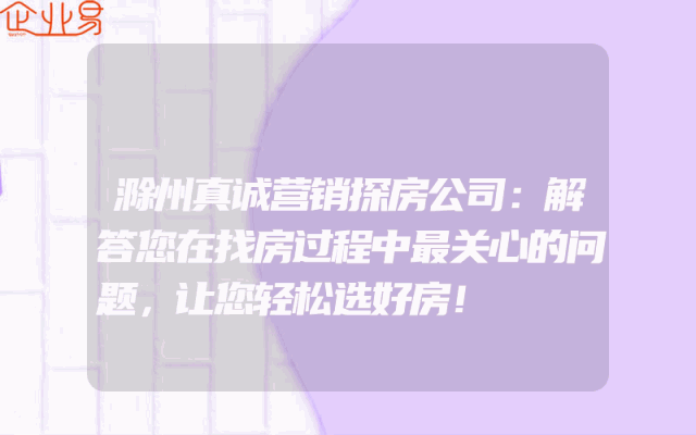 - 滁州真诚营销探房公司:解答您在找房过程中最关心的问题,让您轻松选好房!