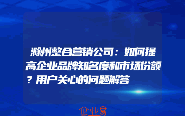 - 滁州整合营销公司:如何提高企业品牌知名度和市场份额?用户关心的问题解答