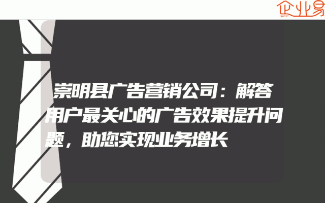 - 崇明县广告营销公司:解答用户最关心的广告效果提升问题,助您实现业务增长