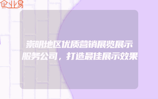 - 崇明地区优质营销展览展示服务公司:解答用户关心的问题,打造最佳展示效果随着市场竞争的日益激烈,企业对于展示效果的要求也越来越高。在崇明地区,有一家专业的营销展览展示服务公司,致力于为企业提供优质的展览展示服务,解答用户关心的问题,打造最佳展