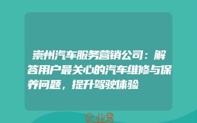 - 崇州汽车服务营销公司:解答用户最关心的汽车维修与保养问题,提升驾驶体验