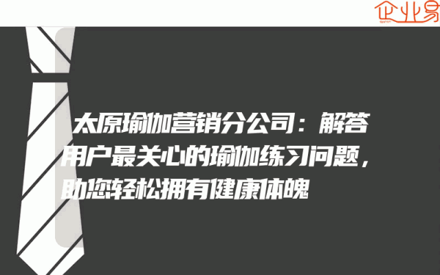 - 太原瑜伽营销分公司:解答用户最关心的瑜伽练习问题,助您轻松拥有健康体魄