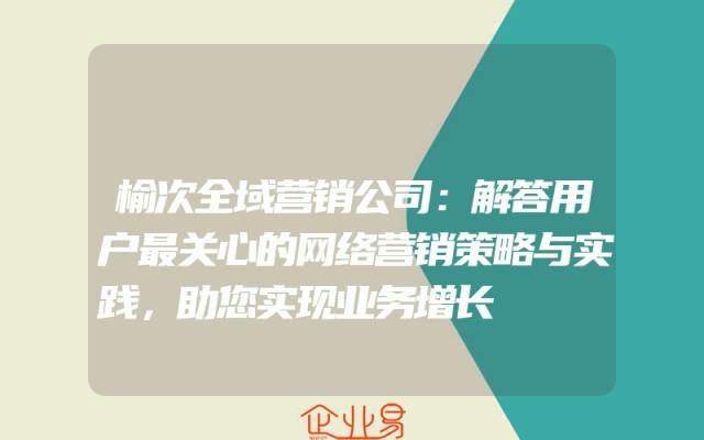 - 榆次全域营销公司:解答用户最关心的网络营销策略与实践,助您实现业务增长