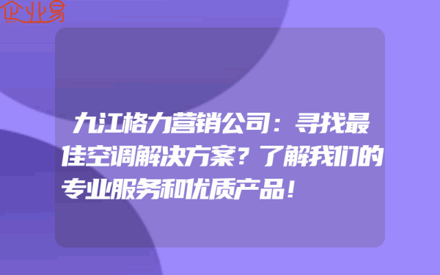 - 九江格力营销公司:寻找最佳空调解决方案?了解我们的专业服务和优质产品!