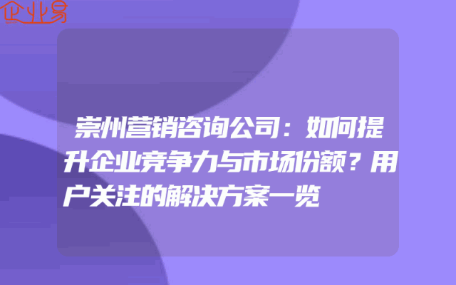 - 崇州营销咨询公司:如何提升企业竞争力与市场份额?用户关注的解决方案一览