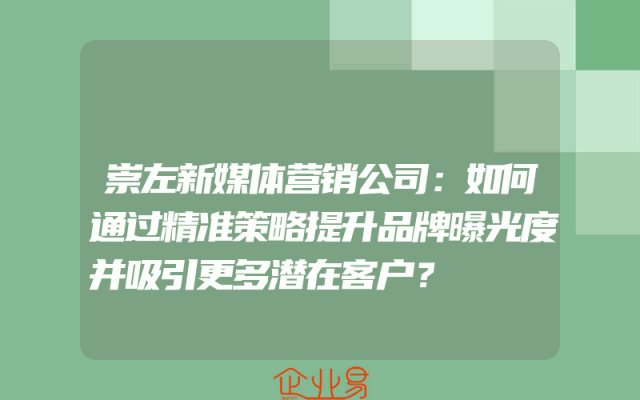- 崇左新媒体营销公司:如何通过精准策略提升品牌曝光度并吸引更多潜在客户?