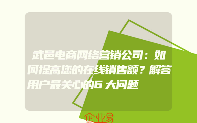 - 武邑电商网络营销公司:如何提高您的在线销售额?解答用户最关心的6大问题