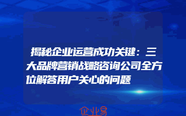 - 揭秘企业运营成功关键:三大品牌营销战略咨询公司全方位解答用户关心的问题