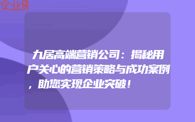- 九居高端营销公司:揭秘用户关心的营销策略与成功案例,助您实现企业突破!