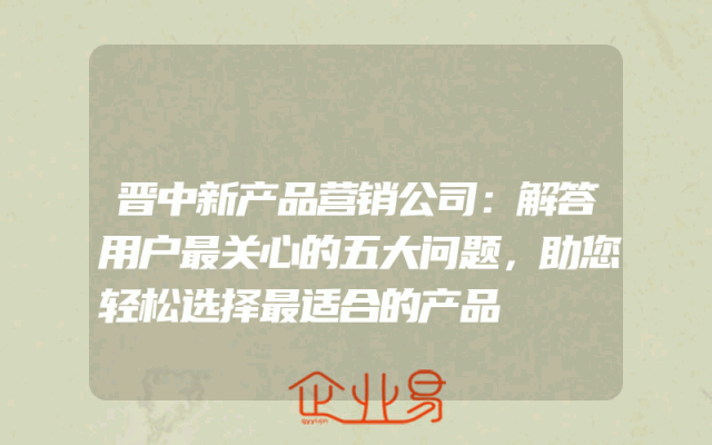 - 晋中新产品营销公司:解答用户最关心的五大问题,助您轻松选择最适合的产品