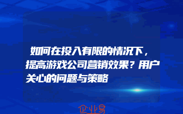 - 如何在投入有限的情况下,提高游戏公司营销效果?用户关心的问题解析与策略在当今的游戏市场中,竞争激烈,许多游戏公司都在寻找有效的营销策略来吸引玩家并提高收入。然而,资源有限,许多公司在投入营销预算时感到困扰。那么,如何在有限的投入下提高游戏