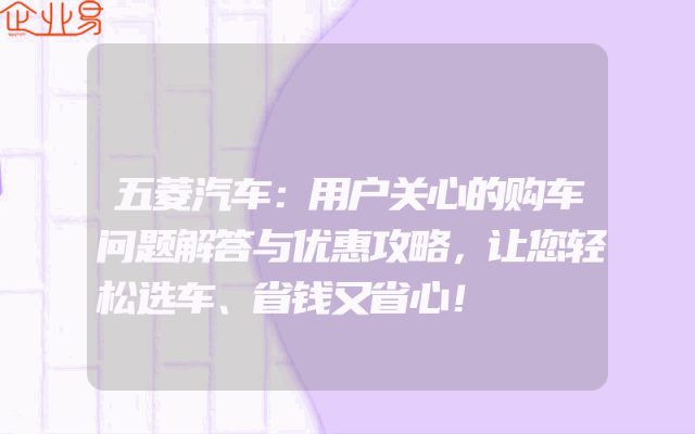 - 五菱汽车:用户关心的购车问题解答与优惠攻略,让您轻松选车、省钱又省心!