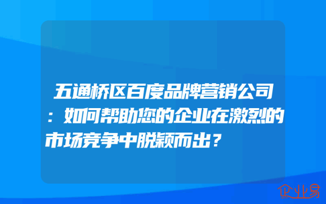 - 五通桥区百度品牌营销公司:如何帮助您的企业在激烈的市场竞争中脱颖而出?