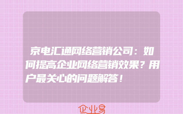 - 京电汇通网络营销公司:如何提高企业网络营销效果?用户最关心的问题解答!
