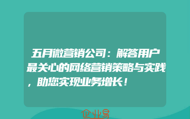 - 五月微营销公司:解答用户最关心的网络营销策略与实践,助您实现业务增长!