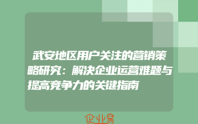 - 武安地区用户关注的营销策略研究:解决企业运营难题与提高竞争力的关键指南