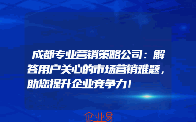 - 成都专业营销策略公司:解答用户关心的市场营销难题,助您提升企业竞争力!