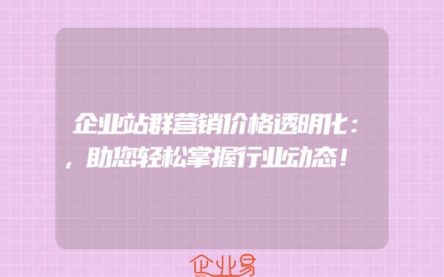 - 企业站群营销价格透明化:,助您轻松掌握行业动态!