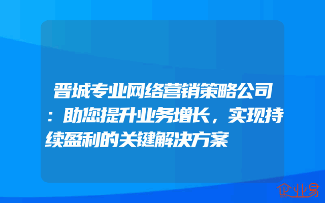 - 晋城专业网络营销策略公司:助您提升业务增长,实现持续盈利的关键解决方案