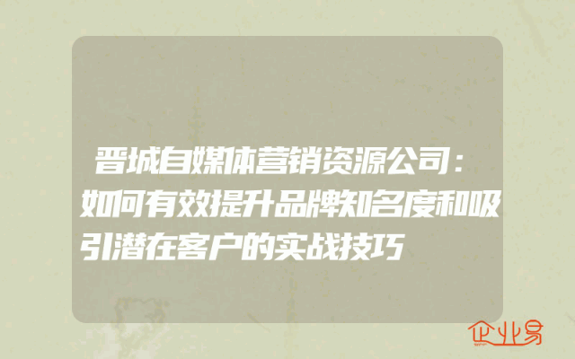 - 晋城自媒体营销资源公司:如何有效提升品牌知名度和吸引潜在客户的实战技巧