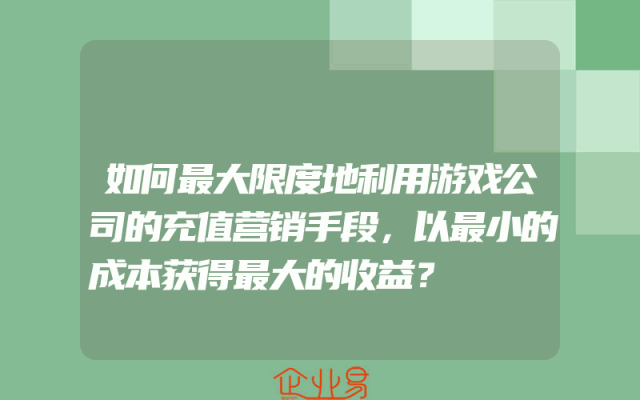 - 如何最大限度地利用游戏公司的充值营销手段,以最小的成本获得最大的收益?