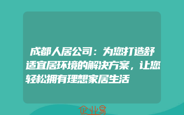 - 成都人居公司:为您打造舒适宜居环境的解决方案,让您轻松拥有理想家居生活