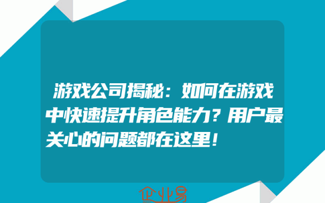 - 游戏公司揭秘:如何在游戏中快速提升角色能力?用户最关心的问题都在这里!