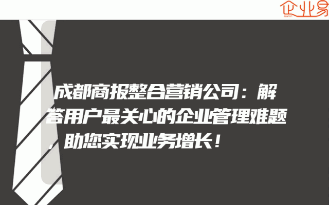 - 成都商报整合营销公司:解答用户最关心的企业管理难题,助您实现业务增长!