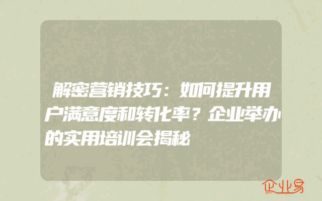 - 解密营销技巧:如何提升用户满意度和转化率?企业举办的实用培训会揭秘