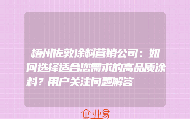 - 梧州佐敦涂料营销公司:如何选择适合您需求的高品质涂料?用户关注问题解答