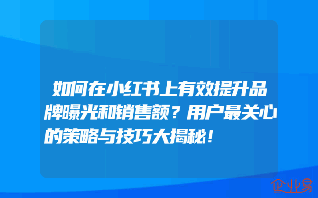 - 如何在小红书上有效提升品牌曝光和销售额?用户最关心的策略与技巧大揭秘!