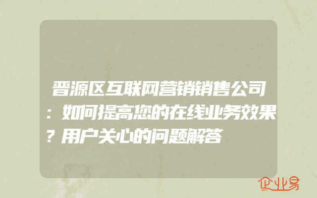 - 晋源区互联网营销销售公司:如何提高您的在线业务效果?用户关心的问题解答