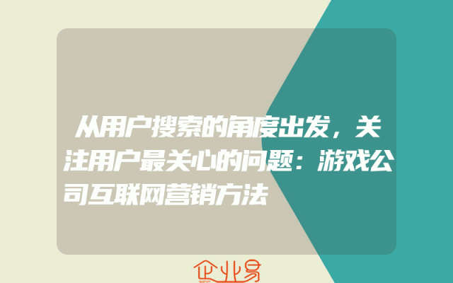 - 从用户搜索的角度出发,关注用户最关心的问题:游戏公司互联网营销方法