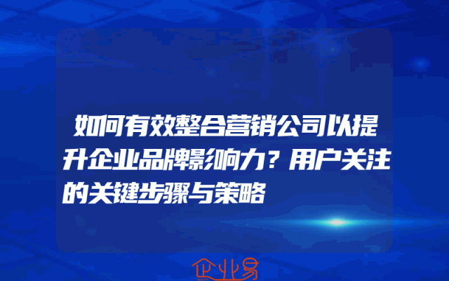 - 如何有效整合营销公司以提升企业品牌影响力?用户关注的关键步骤与策略